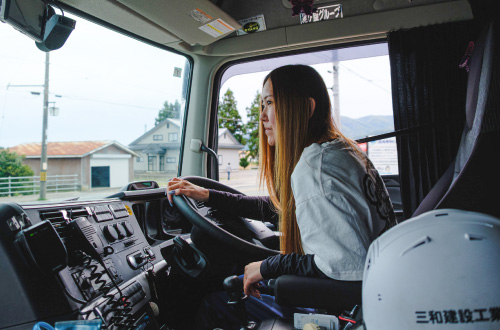 — ドライバーの仕事は自分ひとりの空間で働けるのが特徴で、対人スキルが求められる接客業などに苦手意識がある私にはピッタリの仕事だと思っています。私と同じ感覚を持つ人は少なくないと思いますし、ダンプの場合は運送業と違って手作業の積み下ろしがないので女性にも働きやすいのではないでしょうか。